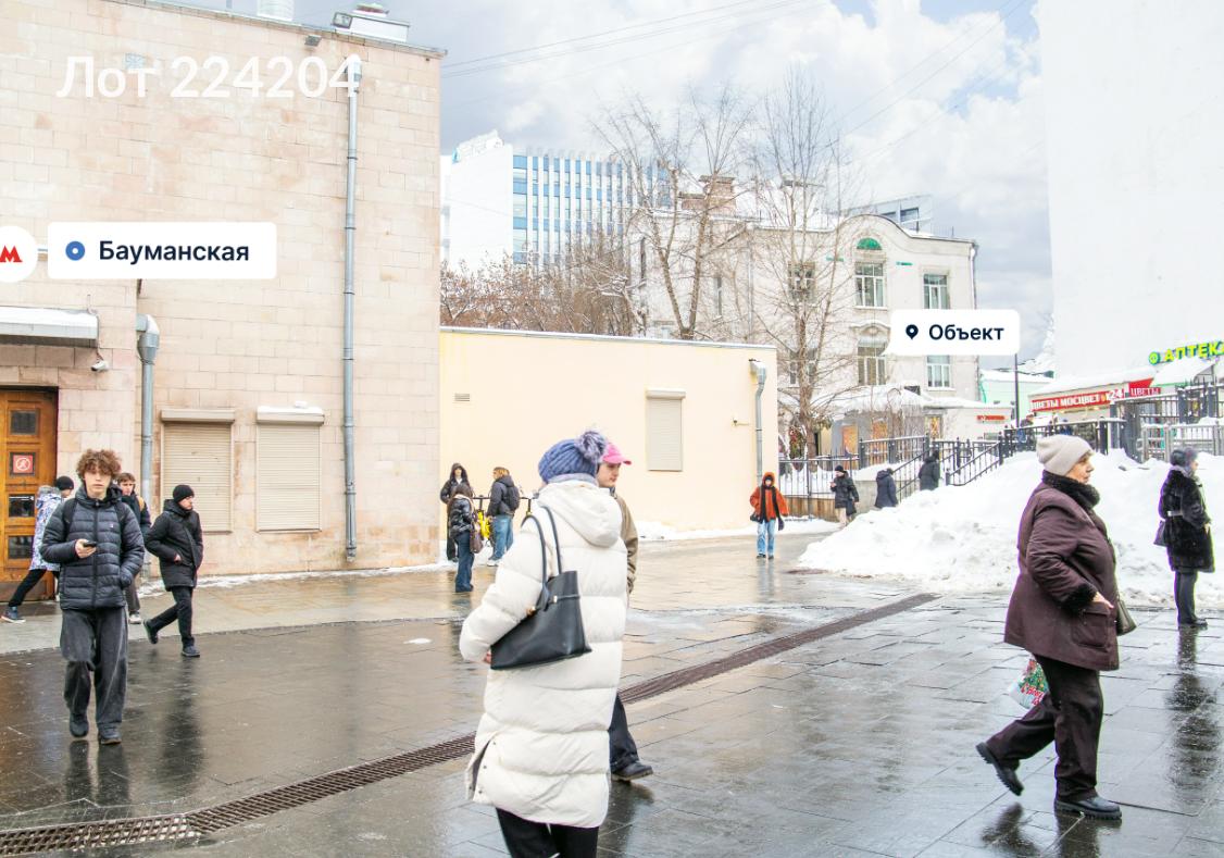 Лот № 224204 Продается коммерческая недвижимость, расположенная по адресу: улица Бауманская, Центральный административный округ города Москвы.Объект находится в непосредственной близости от станции метро «Бауманская», до которой можно добраться менее чем за одну минуту пешком.В районе наблюдается интенсивное автомобильное и пешеходное движение, что обеспечивает высокую проходимость и хорошую транспортную доступность.Помещение обладает значительным рекламным потенциалом, предоставляя возможности для размещения рекламных вывесок и других информационных носителей.